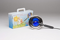 Синий цвет лампы и, соответственно, испускаемый ею свет, выбраны не случайно. Это наименее агрессивный свет. Он постепенно и бережно прогревает больное место, на котором фокусируется, благодаря абажуру, не слепит глаза сквозь прикрытые веки.