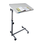 - Подкатной. Такой стол представляет собой столешницу на каркасе с колесиками. Он отличается хорошей мобильностью, так как при необходимости его можно свободно перемещать. Кроме того, колесики таких столов оснащены специальными фиксаторами, благодаря чему можно не бояться, что столик может случайно отъехать от кровати больного.
